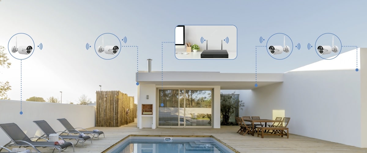 Pakettiin kuuluvat valvontakamerat ovat yhteydessä tallentimessa olevaan sisäänrakennettuun WiFi-verkkoon, muuta WiFi-verkkoa ei tarvita valvontakameroita varten.